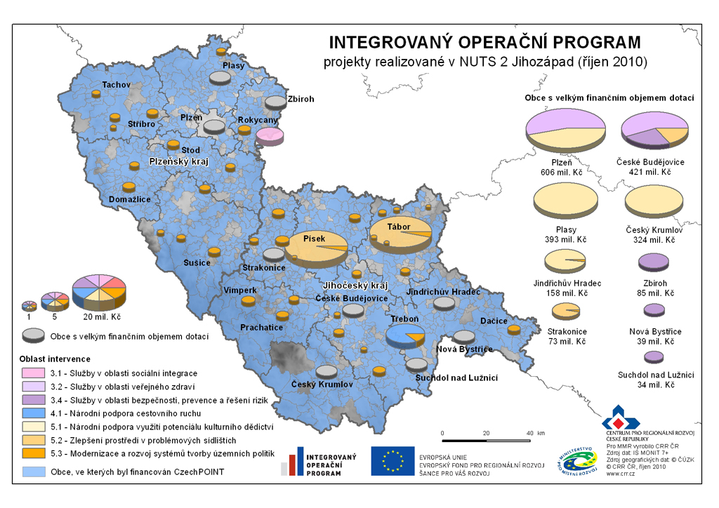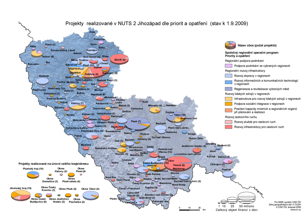 Projekty realizované v NUTS 2 Jihozápad (říjen 2010)