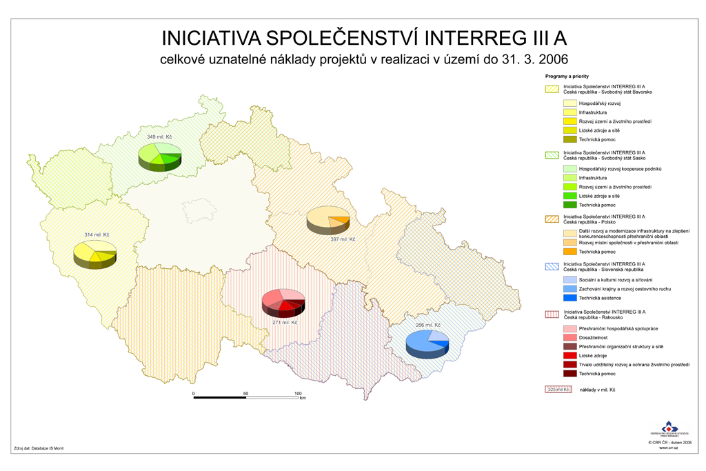 Celkové uznatelné náklady projektů v realizaci v území do 31.3.2006