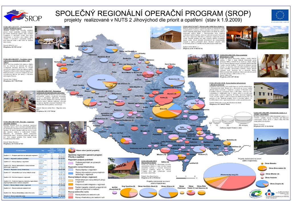 Projekty realizované v NUTS 2 Jihovýchod dle priorit a opatření (stav k 1.9.2009) (Poster)