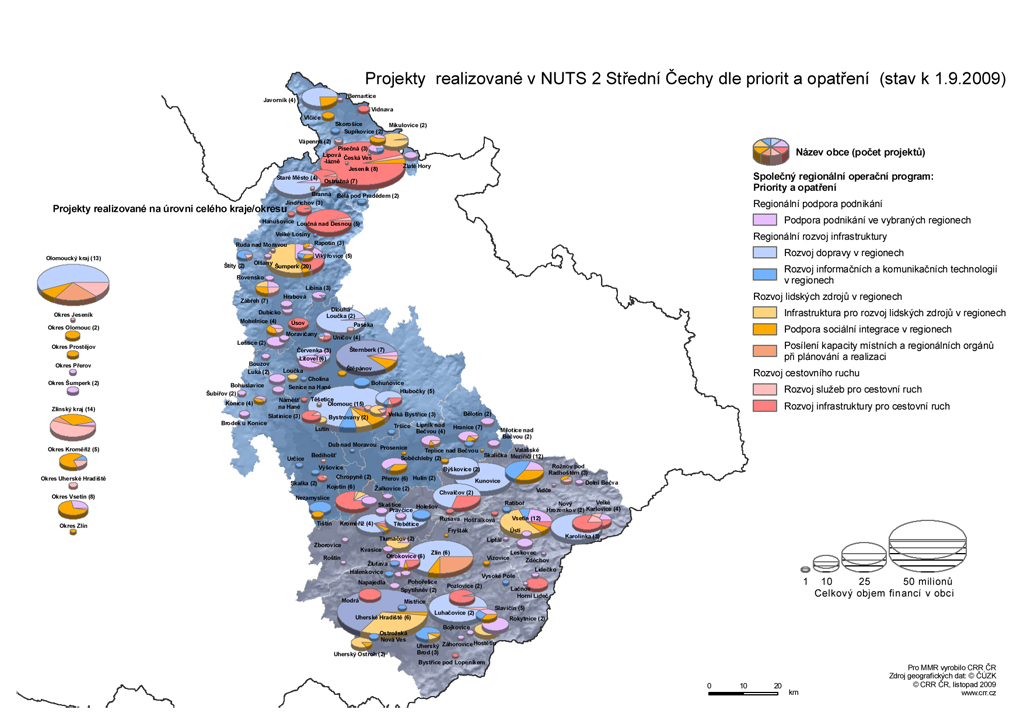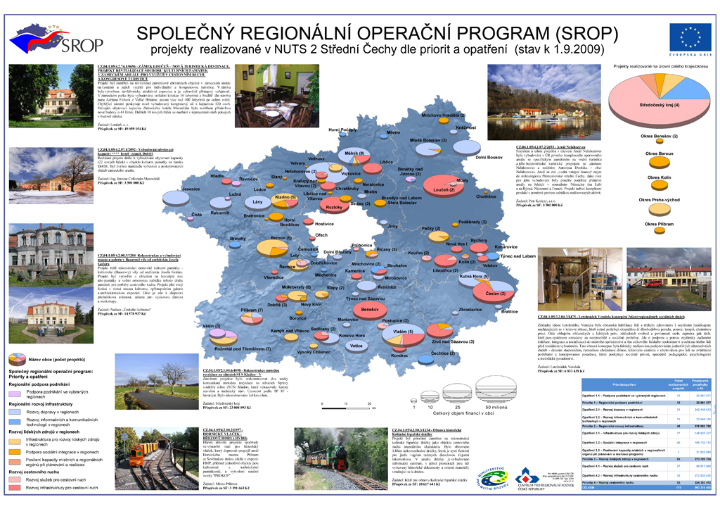 Projekty realizované v NUTS 2 Střední Čechy dle priorit a opatření (stav k 1.9.2009) (Poster)