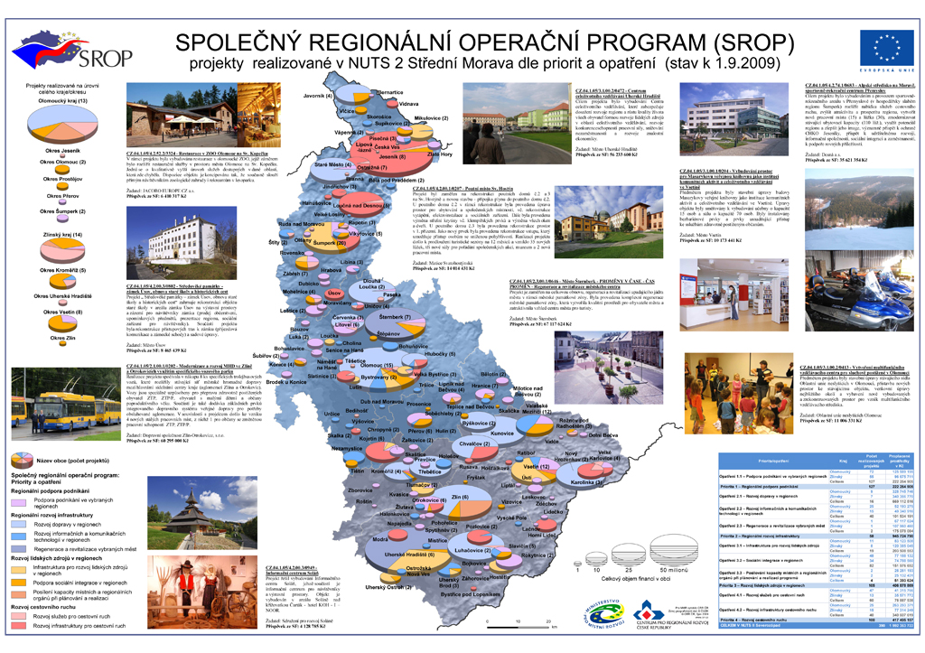 Projekty realizované v NUTS 2 Střední Morava dle priorit a opatření (stav k 1.9.2009) (Poster)