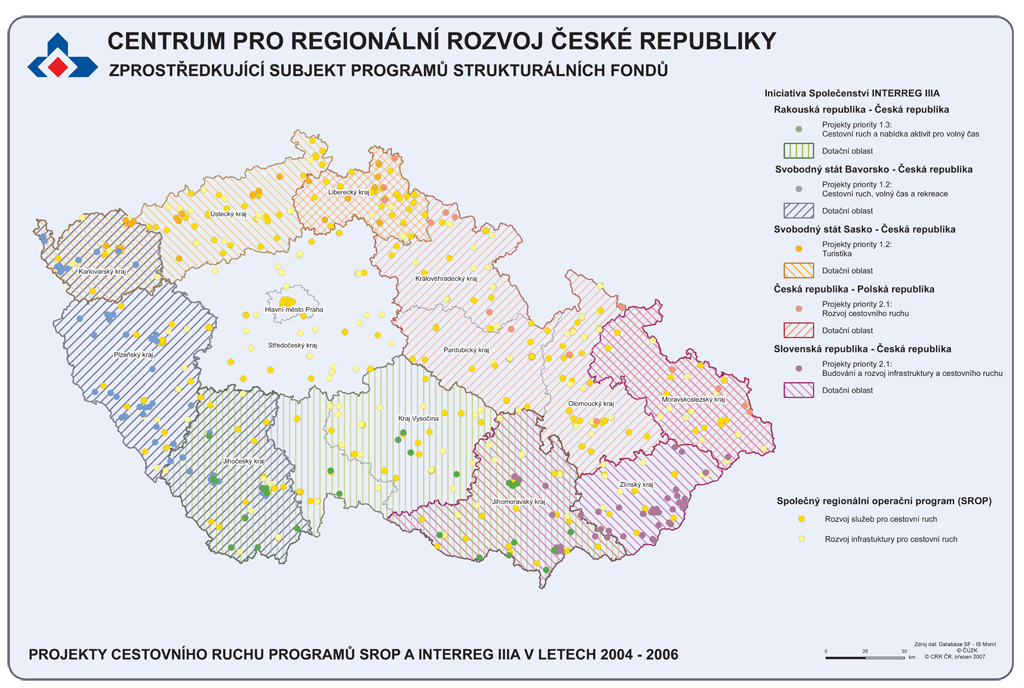 Projekty cestovního ruchu programů SROP a Interreg IIA v letech 2004 - 2006