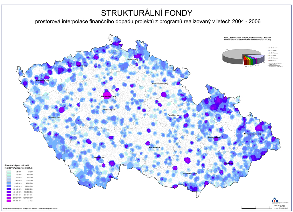 Prostorová interpolace finančního dopadu projektů z programů realizovaných v letech 2004 - 2006