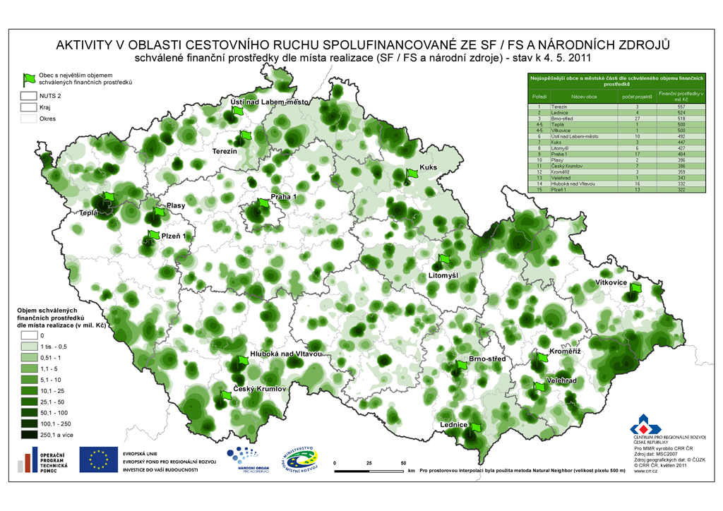 Čerpání obcí s 500 - 5000 obyvateli ze SF/FS a národních zdrojů k 4. 5. 2011 - interpolace