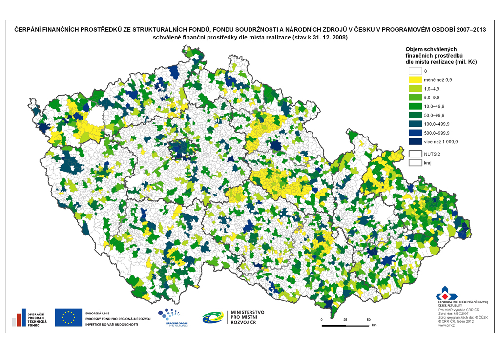 Čerpáni finančních prostředků dle místa realizace k 31. 12. 2008