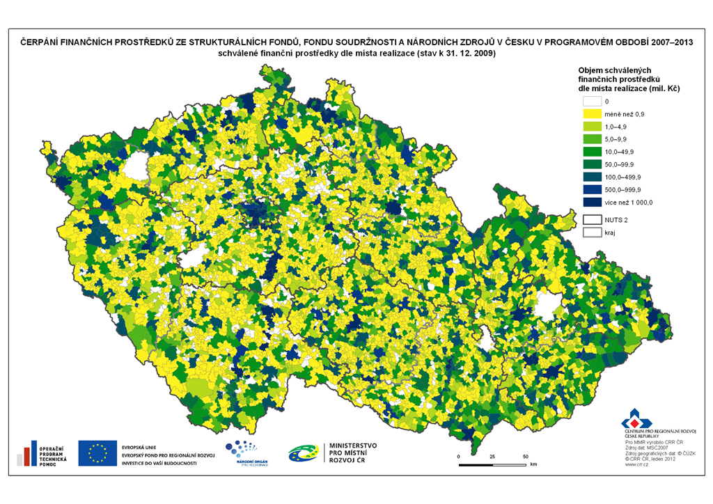 Čerpáni finančních prostředků dle místa realizace k 31. 12. 2009