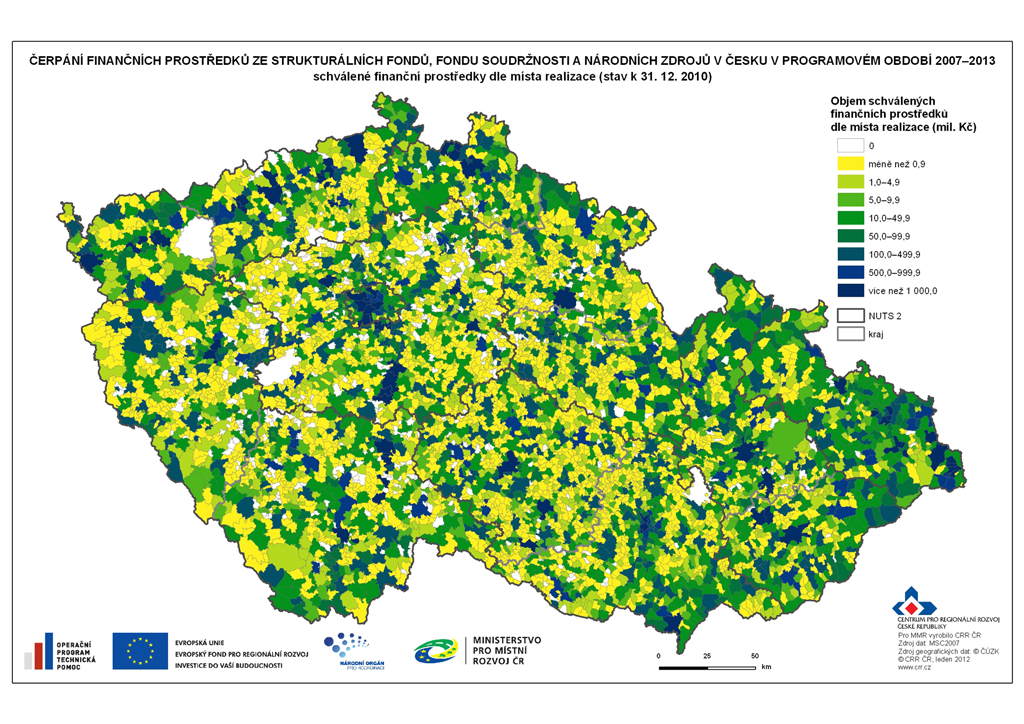 Čerpáni finančních prostředků dle místa realizace k 31. 12. 2010