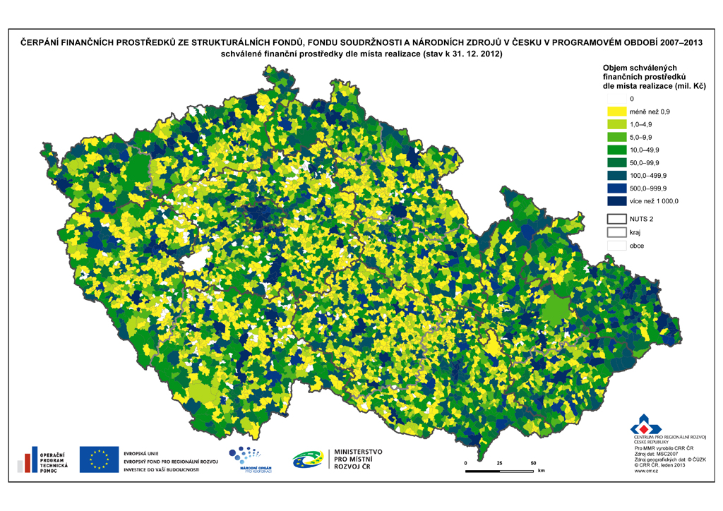 Čerpáni finančních prostředků dle místa realizace k 31. 12. 2012