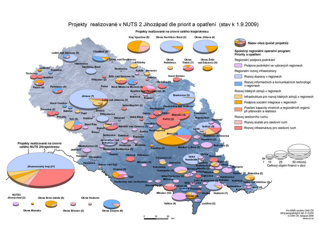 Projekty realizované v NUTS 2 Jihozápad (říjen 2010)