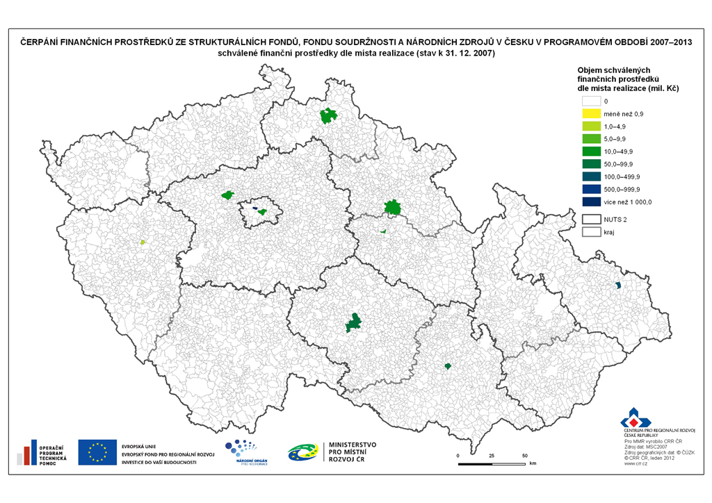 Čerpáni finančních prostředků dle místa realizace k 31. 12. 2007