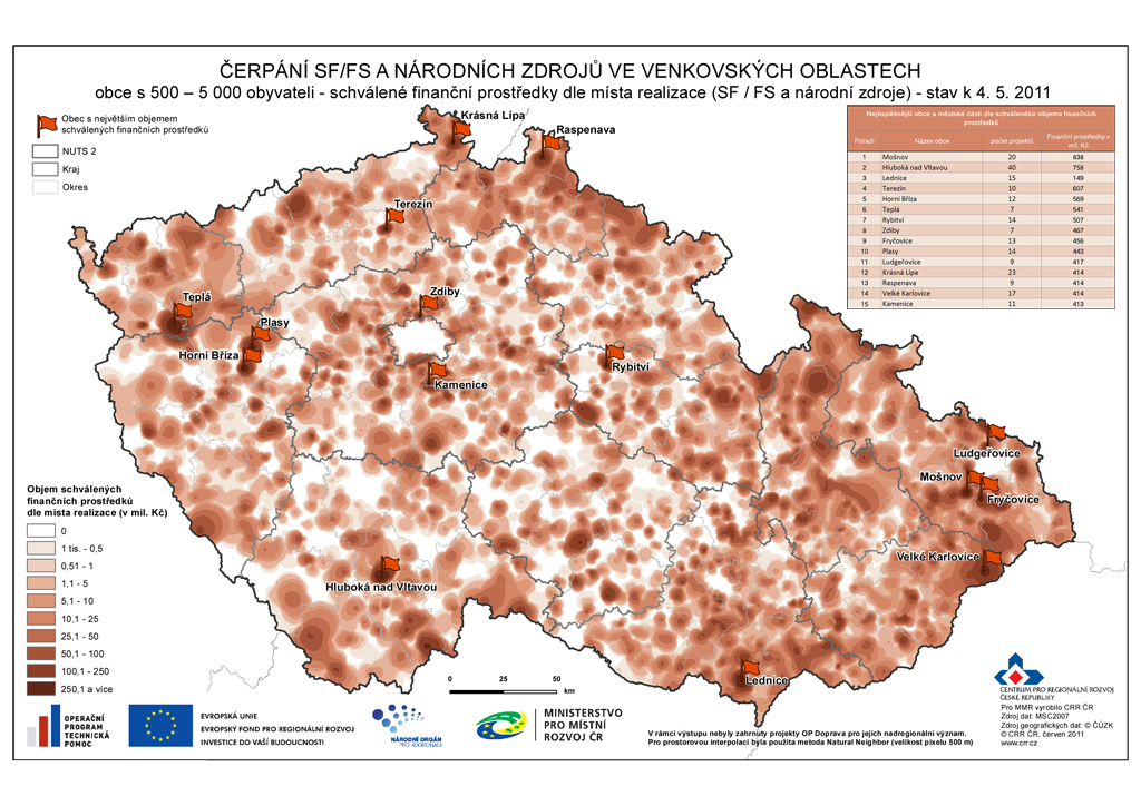Čerpání obcí s 500 - 5000 obyvateli ze SF/FS a národních zdrojů k 4. 5. 2011 - interpolace