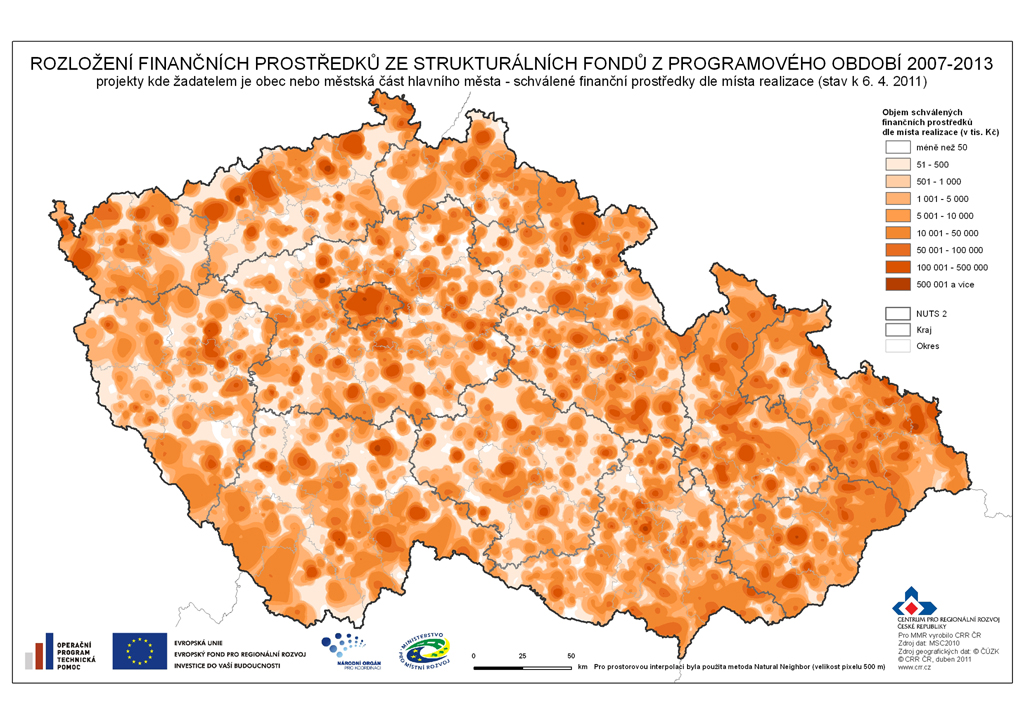 Rozložení projektů a finančních prostředků ze SF 2007-2013 - Interpolace
