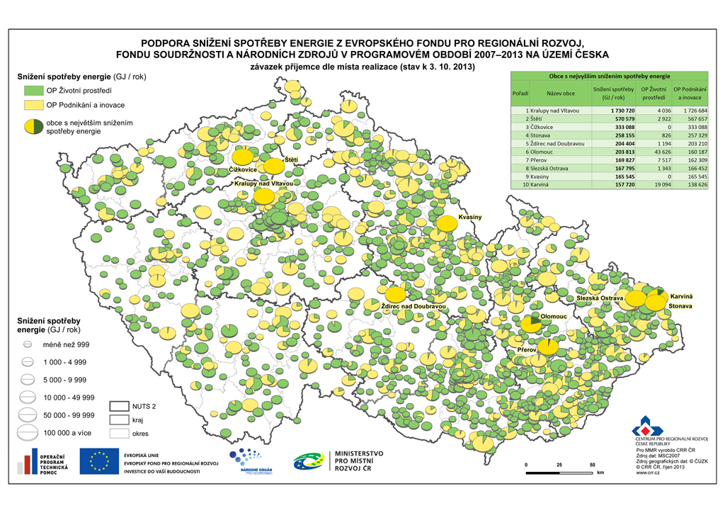Projekty realizované v NUTS 2 Moravskoslezsko (listopad 2010)