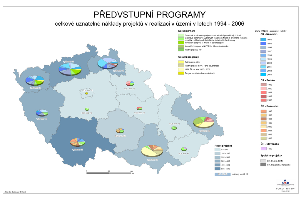 Celkové uznatelné náklady projektů v realizaci v území v letech 1994 - 2006