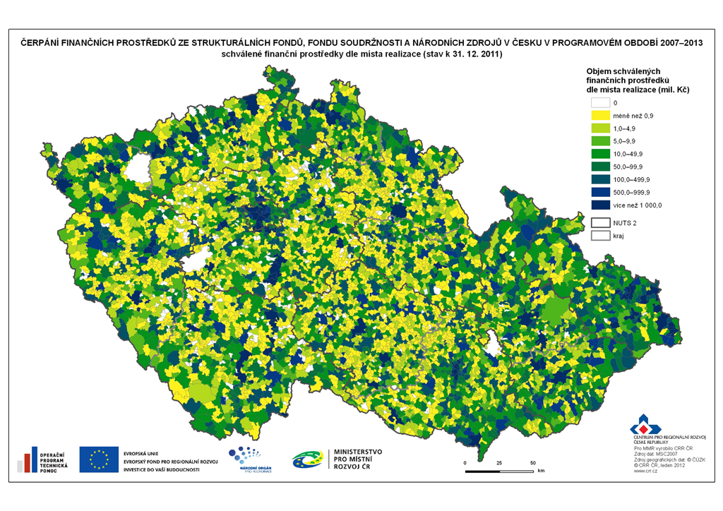 Čerpáni finančních prostředků dle místa realizace k 31. 12. 2011
