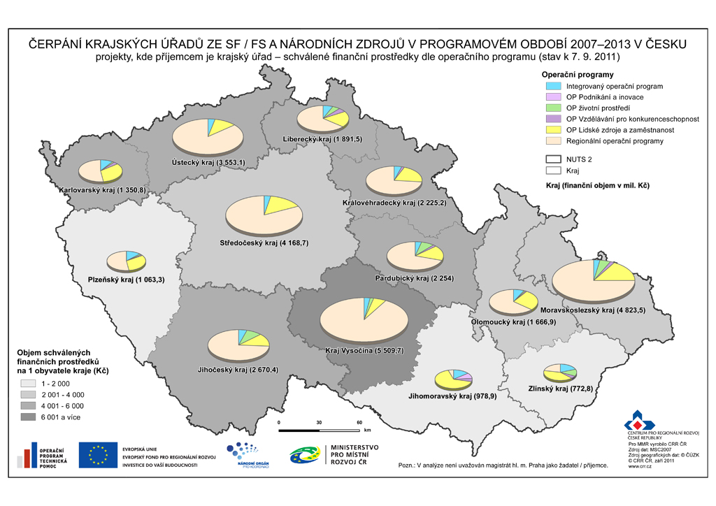 Čerpání krajských úřadů ze SF/FS a národních zdrojů k 7. 9. 2011