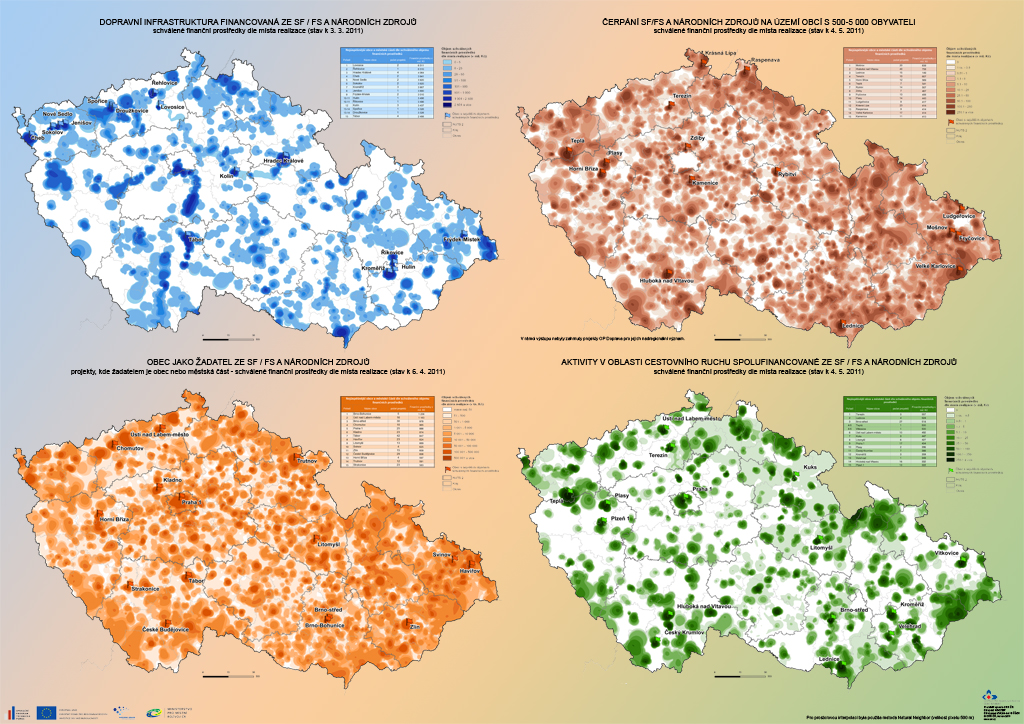 Čerpání obcí s 500 - 5000 obyvateli ze SF/FS a národních zdrojů k 4. 5. 2011 - interpolace